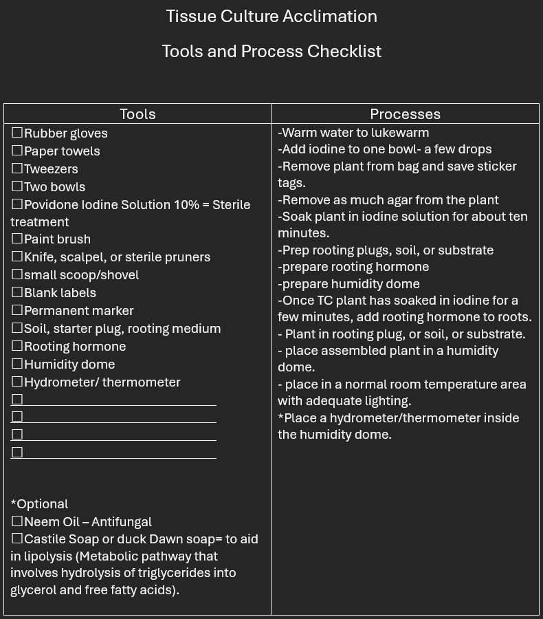 Tissue Culture Acclimation Tools and Process Checklist image sample